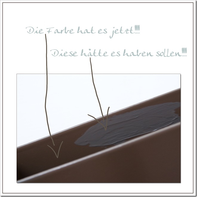 Hier läuft NICHTS wie es soll. Der Umzug von “Les Tissus Colbert” wurde bereits verschoben und nachdem ich gestern unsere frisch gestrichenen Metallteile sah, ahne ich, dass der erneut geplante Umzug (mit Firma und Co.) sich auch weiter nach hinten verschieben wird…
